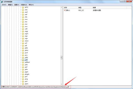 3、依次展开并定位到以下注册项:“HKEY_CURRENT_USER\Software\Microsoft\Windows\CurrentVersion\Explorer\FileExts\.pdf ;