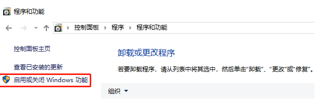 3、然后,在打开的程序和功能窗口中,点击左侧的启用或关闭 Windows 功能;