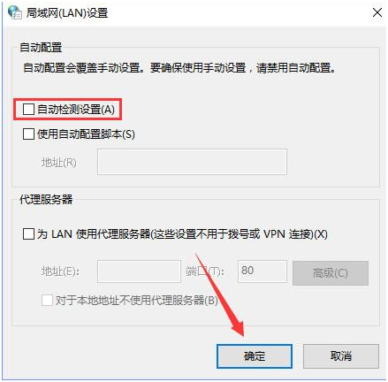 5、将【自动检测设置】的勾去掉,点击【确定】后查看是否问题解决;