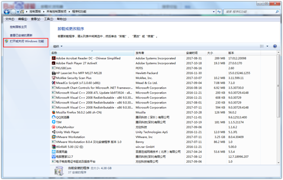 3、打开之后,选中右侧的“打开或关闭Window功能”,并打开。