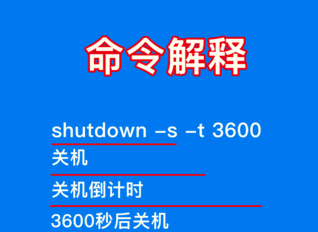 2、其中:shutdown -s -t 3600 命令的含义是,shutdown -s 表示关机,shutdown -s -t 表示电脑关机倒计时,最后面的数字则表示倒计时时间,单位为秒,也就是说电脑将在3600秒后自动关机;