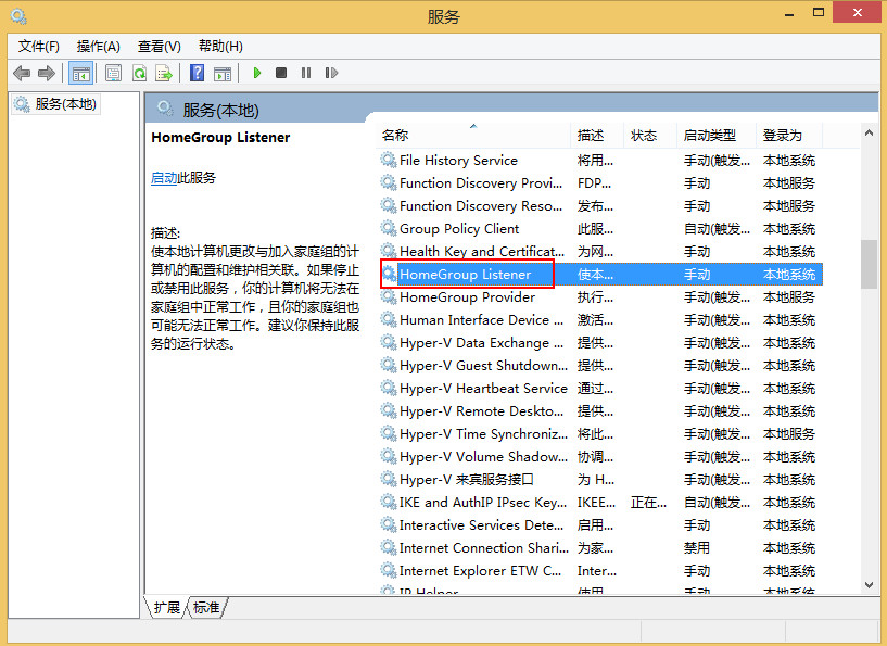 4、弹出的服务窗口中,找到HomeGroupListener服务项并双击打开,如下图所示: