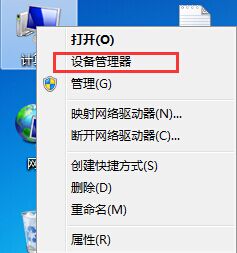 1、在桌面上找到“计算机”,右键点击,选择“设备管理器”,如图所示: