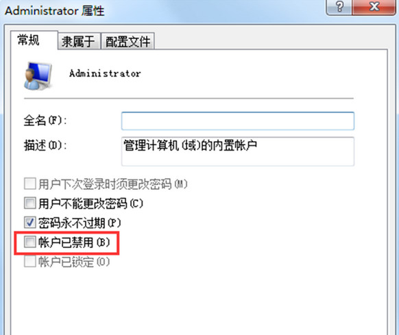 2、如果还不行就尝试开启Administrator帐户,这样就算双击也能以管理员身份运行了,具体操作右键计算机,选择“管理—本地用户和组—右键点击Administrator属性—取消“帐户已停用”选项并确定,如下图所示: